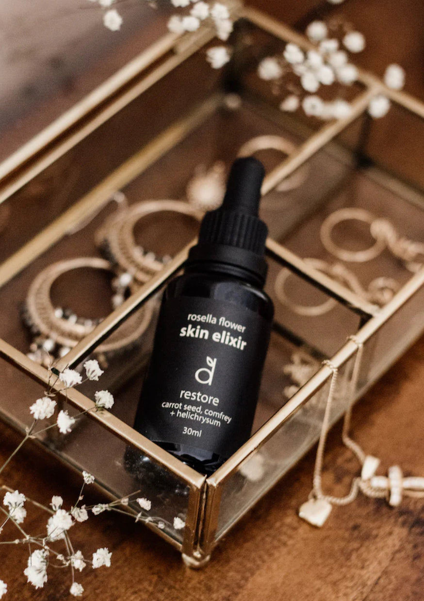 Our age defying elixir will help restore health and luminosity to your skin. Keep skin plump, hydrated and nourished while helping improve the appearance of scars, blemishes, stretch marks, sunspots and fine lines with our specially-formulated skin elixir. The combination of luxurious plant oils in our restore skin elixir helps to soothe and soften your skin, reducing dryness and irritation and supporting skin rejuvenation and elasticity.